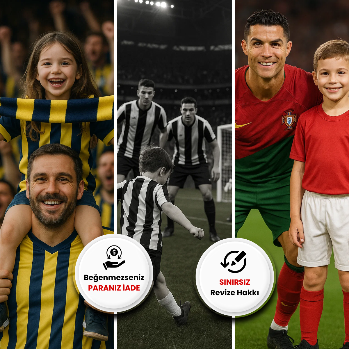 Futbol takımları için kişiye özel, gerçekçi dijital taraftar tasarımları hazırlıyoruz! ⚽ Çocuğunuzun fotoğrafını gönderin, sevdiği takımın renkleri, logosu ve maskotu ile tamamen kişiye özel bir gerçekçi taraftar karakteri oluşturuyoruz. Her futbol takımı için, çocuğunuzun hayalindeki taraftar karakterini gerçeğe dönüştürmek için dijital tasarım yapıyoruz.
