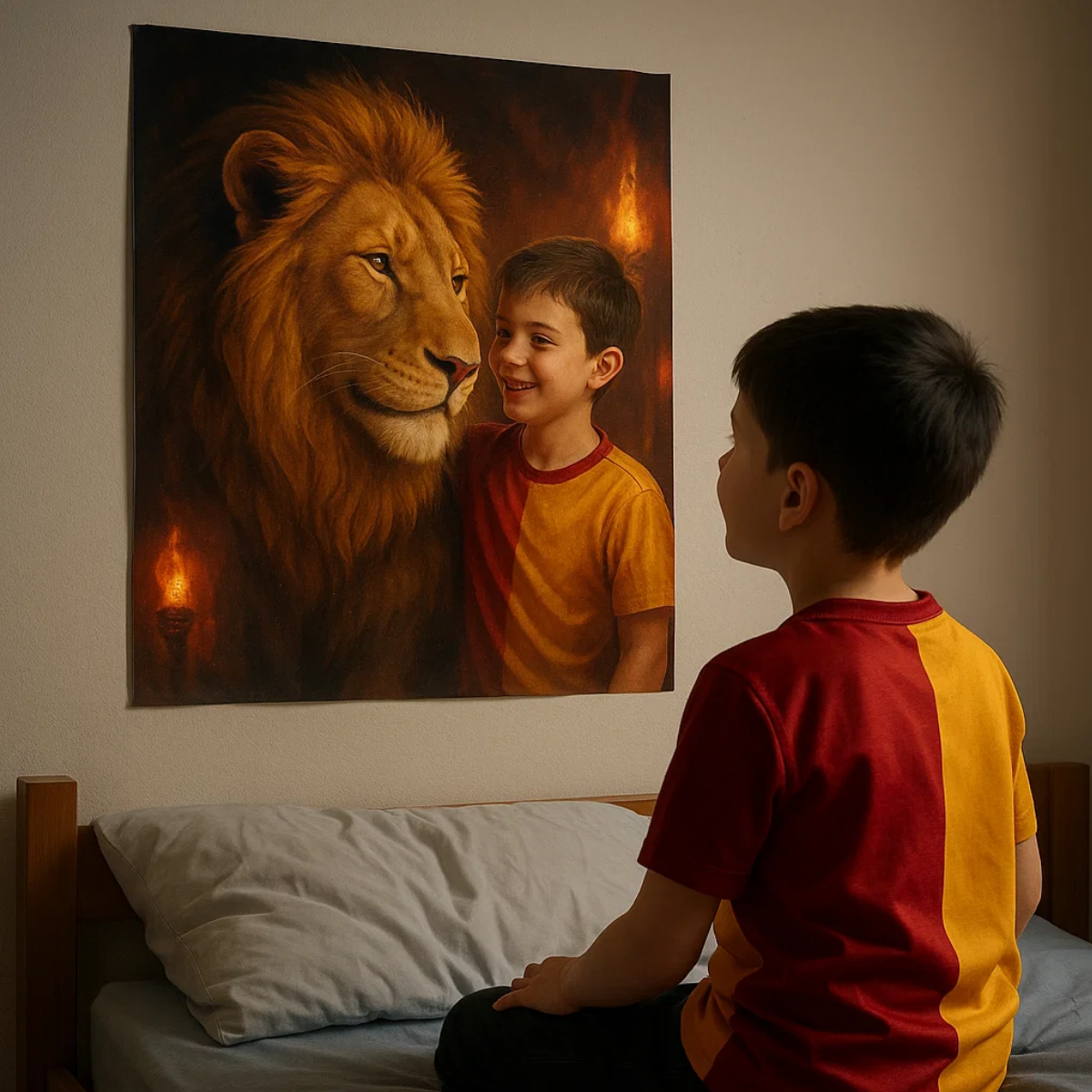 Çocuğunuzun futbol takımı karakteriyle yer aldığı bu tasarım, sadece bir görsel değil, çocuğunuzun takıma olan sevgisini dijital sanatla şekillendiren özel bir hatıra olacaktır. Hem futbol takımının logosu, renkleri ve maskotları hem de çocuğunuzun kişisel özellikleri ile tam uyumlu bir dijital tasarım sunuyoruz.