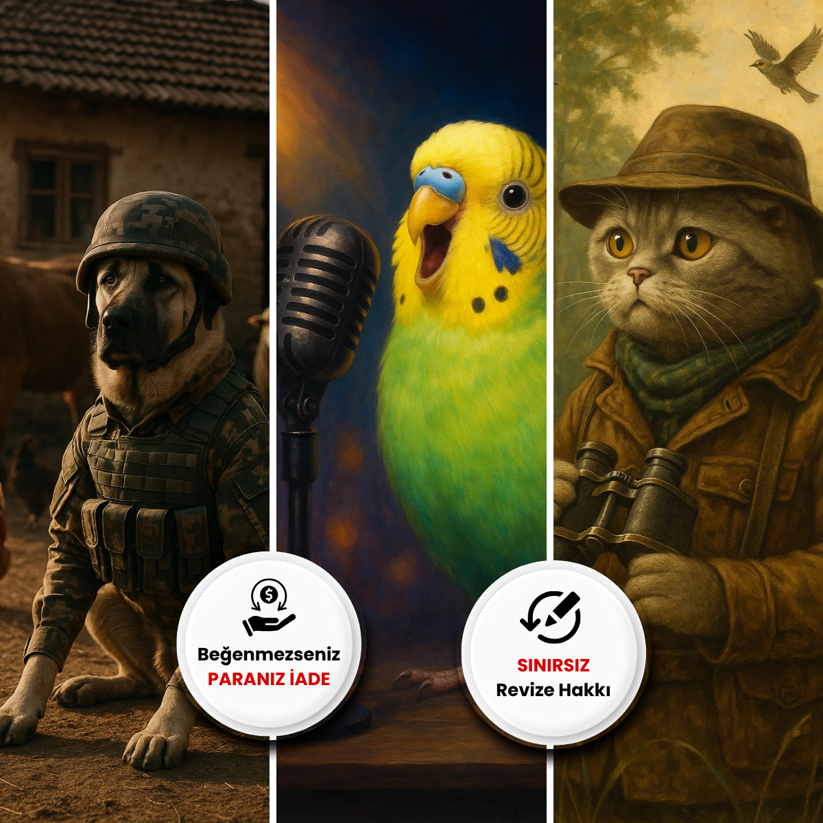Evcil Hayvanınıza Özel Meslek Temalı Dijital Portre – Kahramanınızın Gerçek Yüzünü Keşfedin!